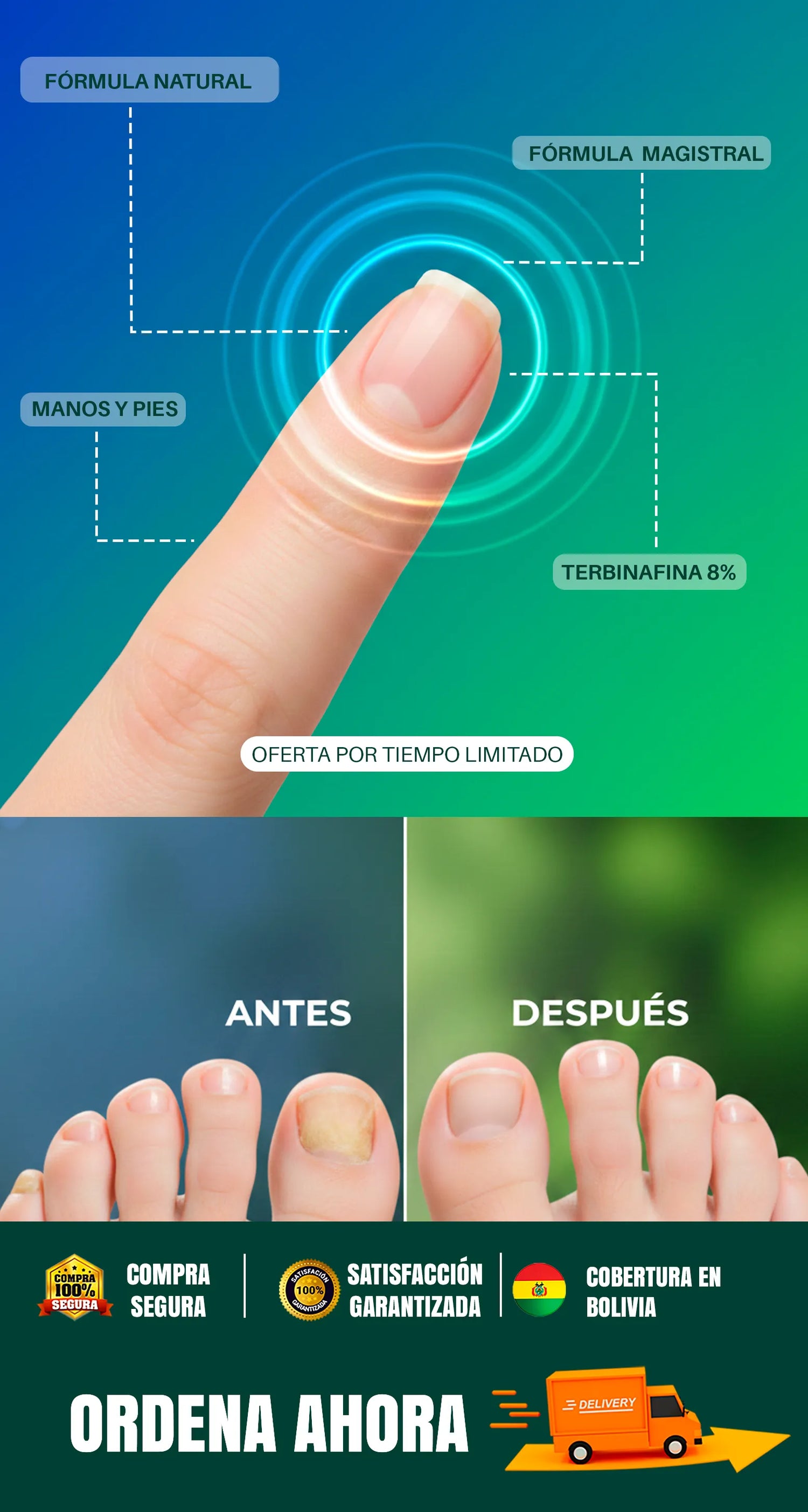 Zona de aplicación: Uñas de manos y pies.